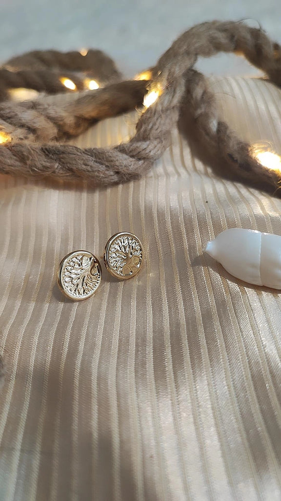 Boucles d'oreilles en acier inoxydable avec arbre de vie doré